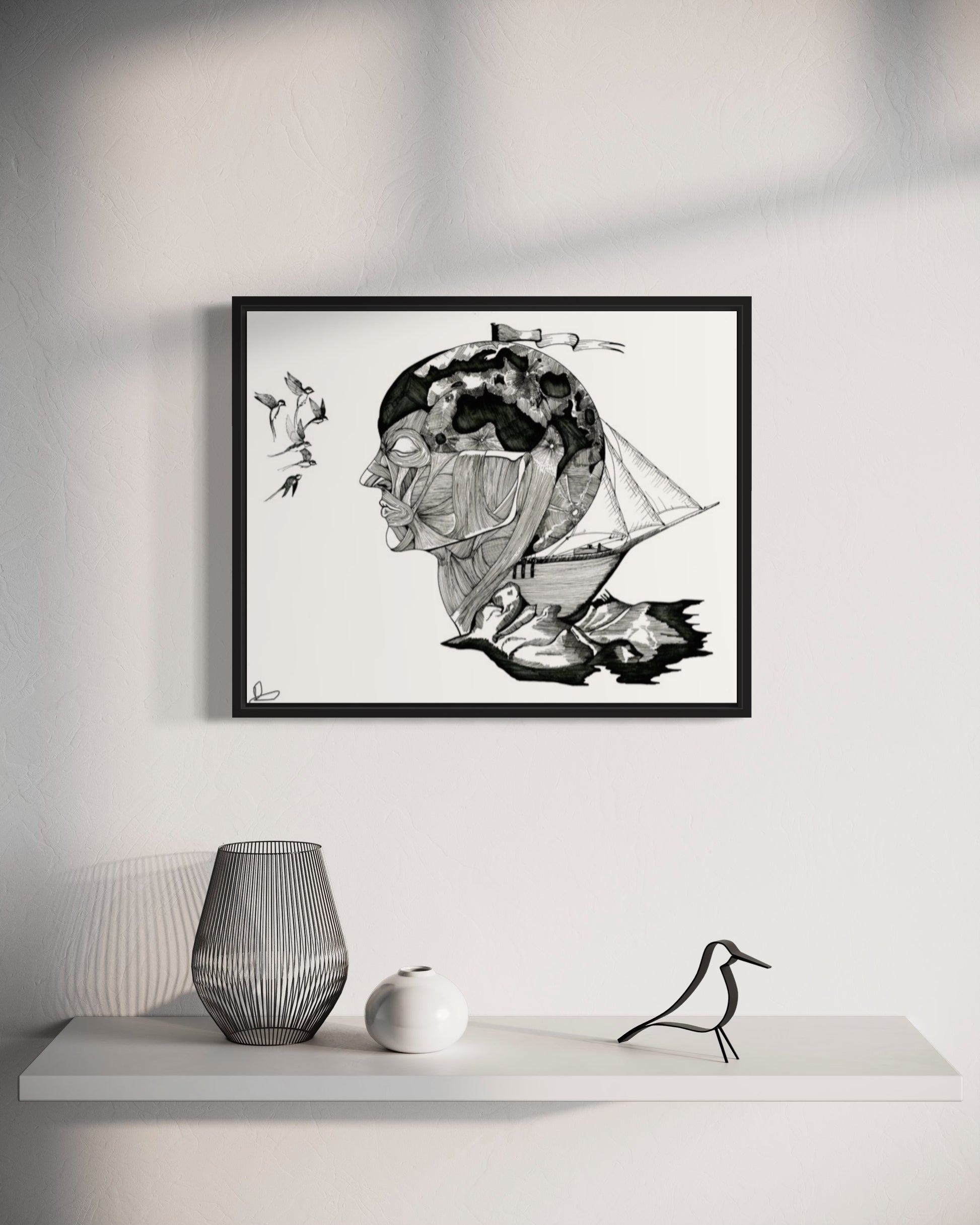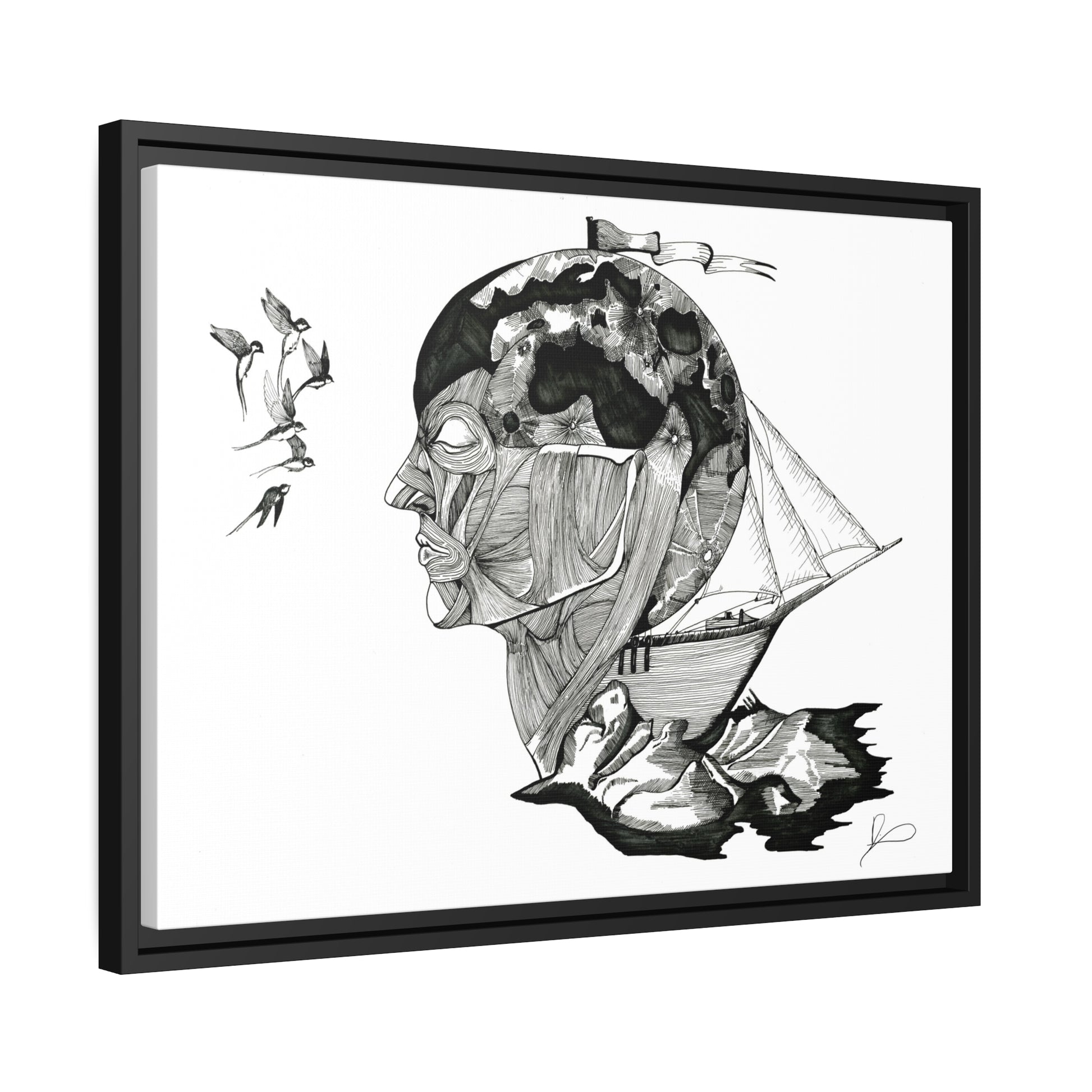 Product specifications: Limited edition (25) canvas made of a cotton and polyester blend, featuring a unique proprietary coating and encased in a black pinewood frame.
