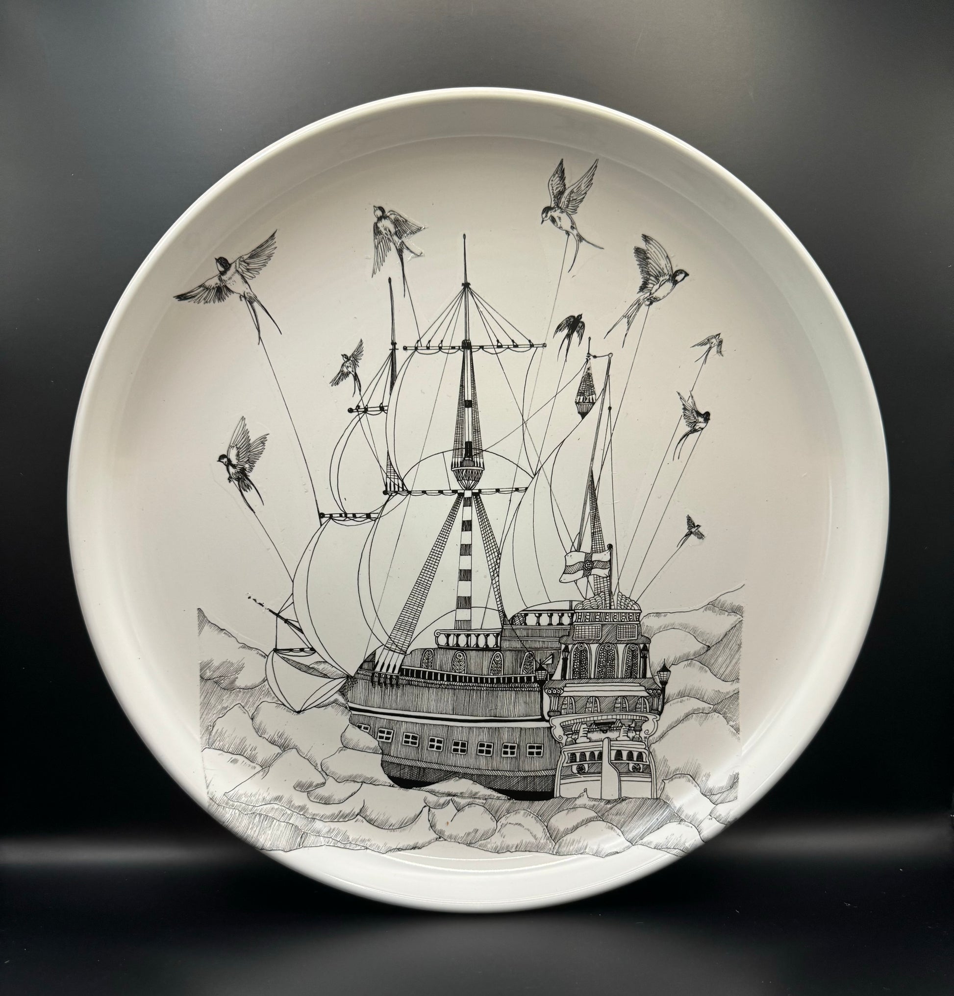 Product specifications: Limited series (25) ceramic plate, measuring 10.5 inches, designed for decorative use. It is advisable not to wash it in order to preserve the piece.