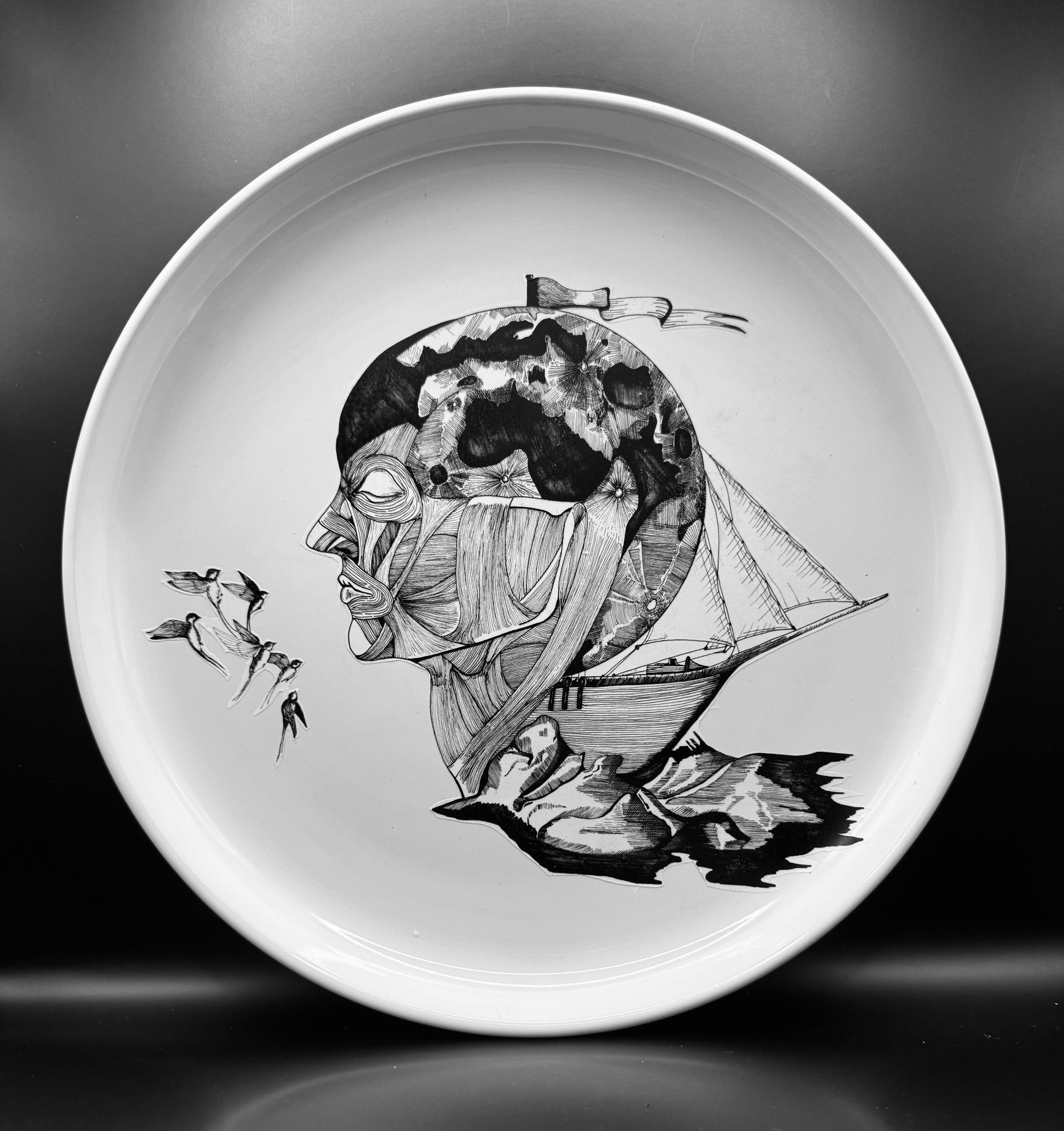 Product specifications: Limited series (25) ceramic plate, measuring 10.5 inches, designed for decorative use. It is advisable not to wash it in order to preserve the piece.