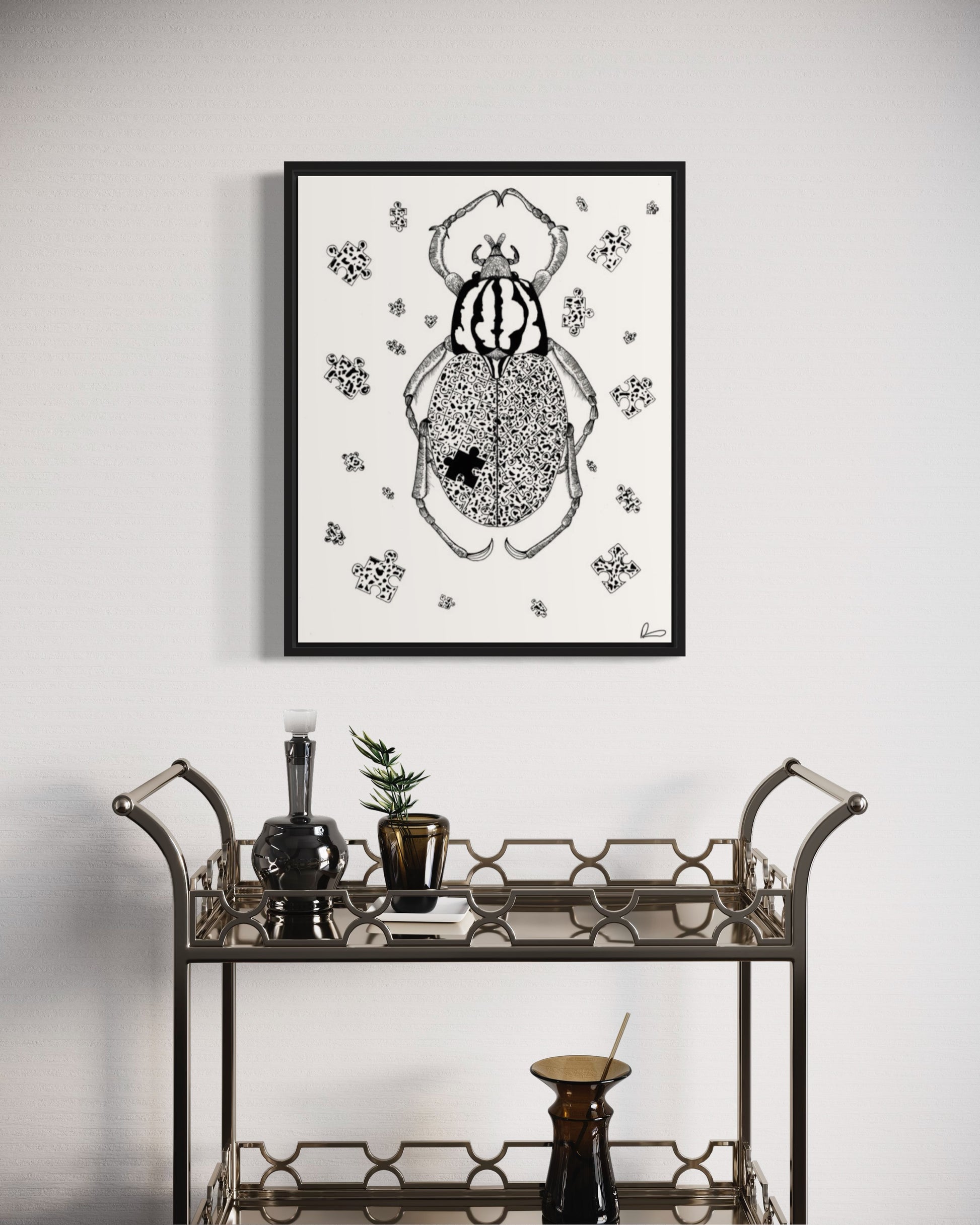 Product specifications: Limited edition (25) canvas made of a cotton and polyester blend, featuring a unique proprietary coating and encased in a black pinewood frame.